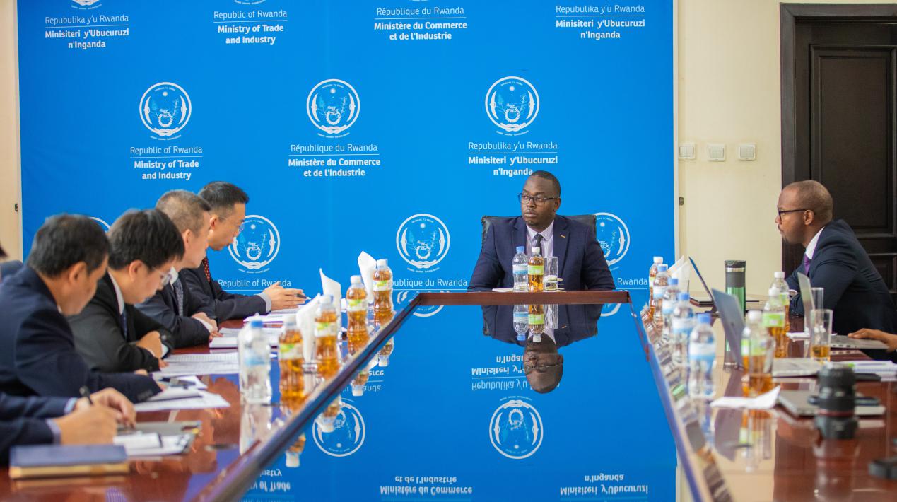 2024年8月21日,王雪坤大使出席中华人民共和国商务部世界贸易组织司谈判副专员韩长天同卢旺达共和国贸易和工业部常务秘书普鲁登斯·塞巴希兹工作会谈。中卢双方就深化中卢经贸关系和多领域合作进行了充分交流。驻卢旺达使馆高志强参赞、卢旺达贸工部贸易与投资司司长安托尼·卡江奎等参加。